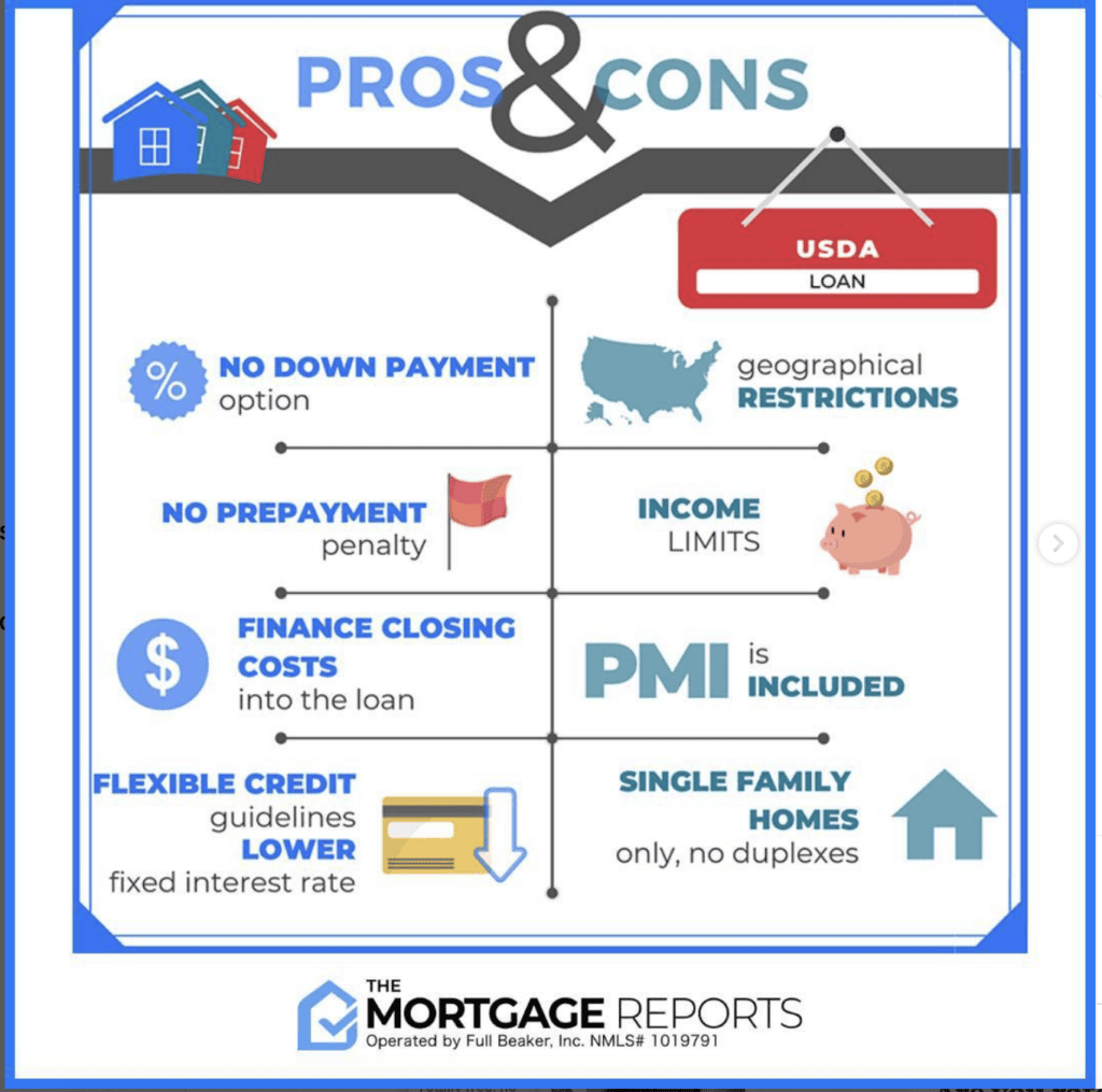The Mortgage Reports used an infographic to display the pros and cons of USDA loans in a clear, visually appealing format and shared it via Instagram.