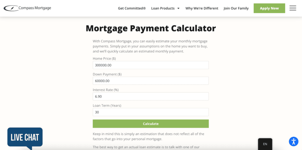Compass Mortgage offers numerous mortgage calculators on its website, including:
