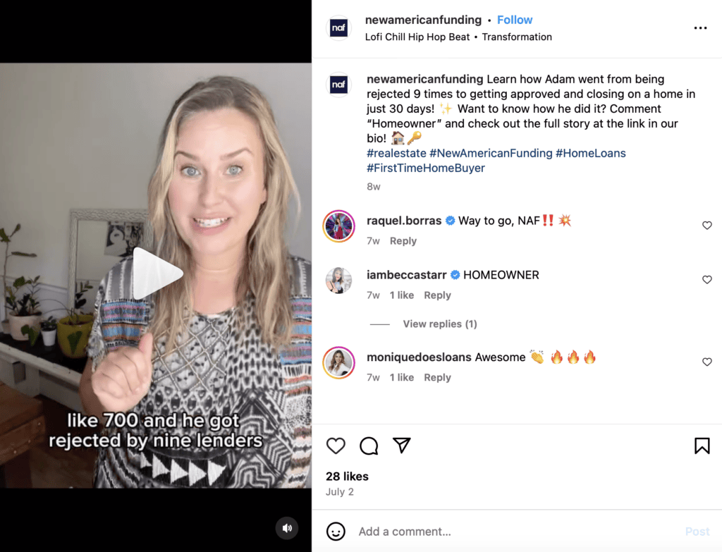 New American Funding recently shared a customer success story on Instagram about a buyer who was rejected nine times before getting approved and closing on a home with the company.
